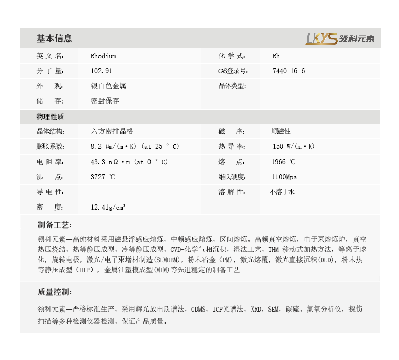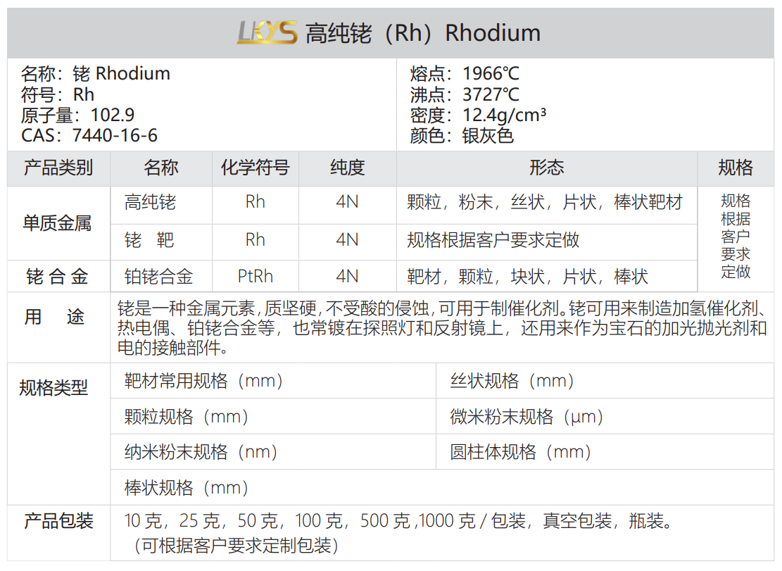 | 分子式:Rh |