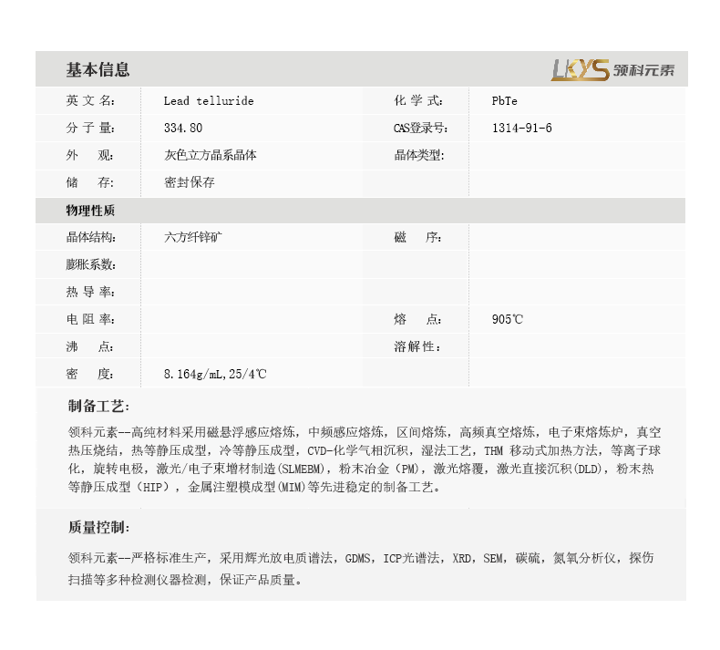 碲化铅粉