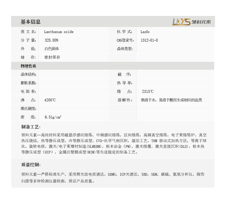 | 分子式:La2O3 |